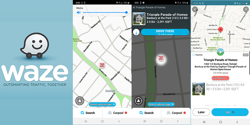 Case in point: Articulon recently used pins on Waze as an add-on promotion for the Triangle Parade of Homes. Approximately 10% (30 homes across the Triangle) participated. Over the 30-day period the pins were active, the pins received more than 475,000 driving impressions, nearly 2,000 search impressions and a CTR (click rate) of .11%. In comparison, according to Smart Insights, in 2019 the average digital display ad CTR is just 0.05% across all ad formats and placements.