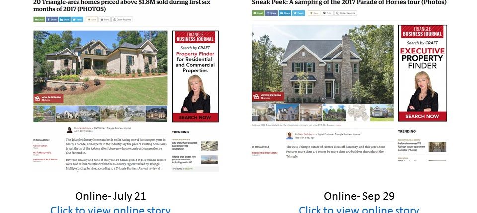 Promote the Triangle Parade of Homes to drive app downloads, as well as home tours over three weekends at the end of September/beginning of October 2017.