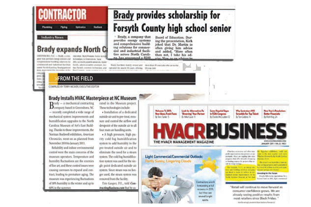 Brady is headquartered in Greensboro, North Carolina with locations in Raleigh, Durham, Fayetteville, Wilmington and Charlotte. Founded in 1962 by Chairman Don Brady, the company remains a family owned enterprise, today employing 328 associates. The company works with building owners, facility managers, developers, architects, engineers and contractors providing sustainable, comprehensive building solutions for commercial and industrial facilities. Brady provides customers with a diverse range of HVAC and building solutions including building automation, energy conservation, green design, performance contracts, access controls, security, mechanical systems, parts and supplies, as well as world-class technical support.