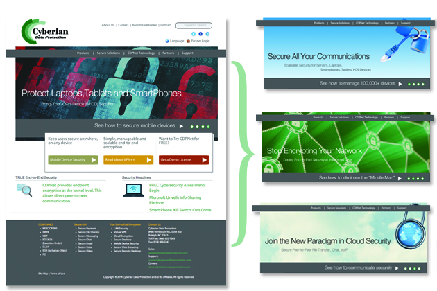 At the heart of Cyberian Data Protection’s offerings is manageability, scalability and ease of installation with field proven technology and products. Since specific component needs will vary by application, each product needed a clear explanation of three key elements: specifications, system requirements and features. The answer was to program a tab system for easy navigation, as well as data sheet downloads. The site was developed to be dynamic, allowing for mobile- and tablet-friendly display.