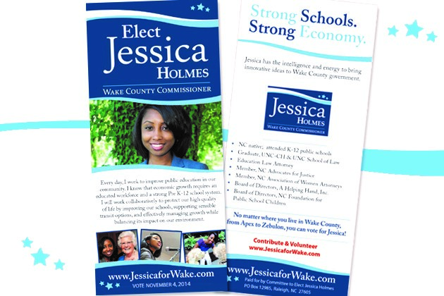 In 2014, as a candidate running for Wake County Commissioner, Jessica Holmes engaged Articulon to develop branded collateral to communicate with voters. A custom design was created to showcase her passion for the Wake County Public School System, while sharing her accomplishments and key messages.