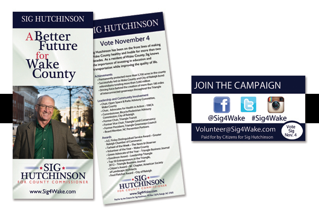 Candidate for the Wake County Commission, Sig Hutchinson engaged Articulon for the management of political advocacy and issues for his campaign. Articulon helped develop a narrative and website, social media marketing, direct mail marketing, as well as media and public relations.