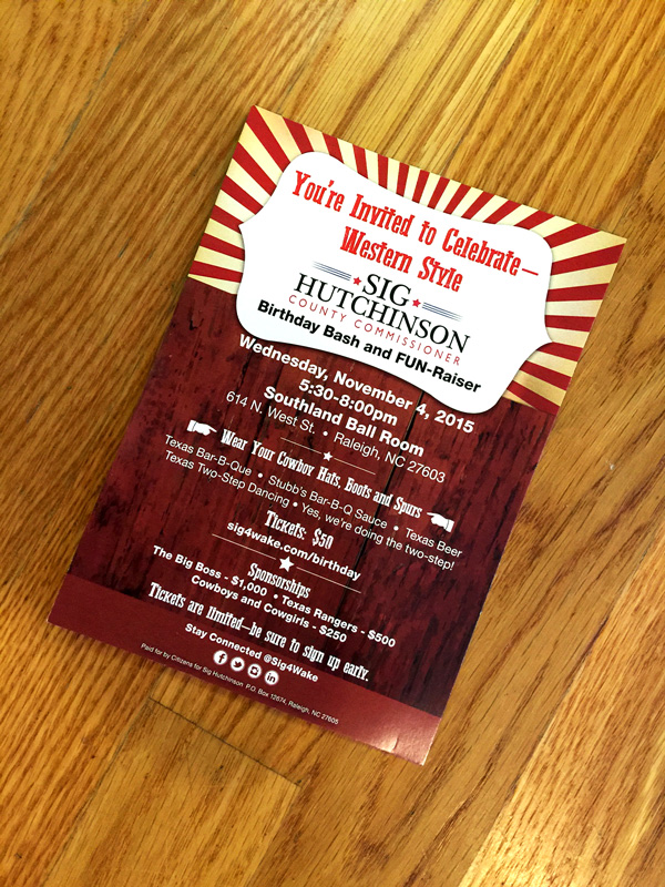 Wake County Commissioner Sig Hutchinson Fundraising Event