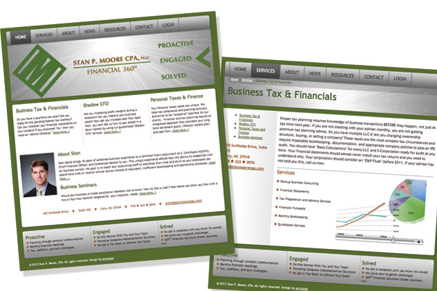 The website services and accounting firm marketing program for Stan Moore CPA was developed to generate leads via search engine optimization. Navigation to key information within one click was standardized for his small business customers.