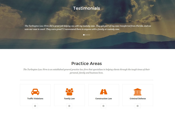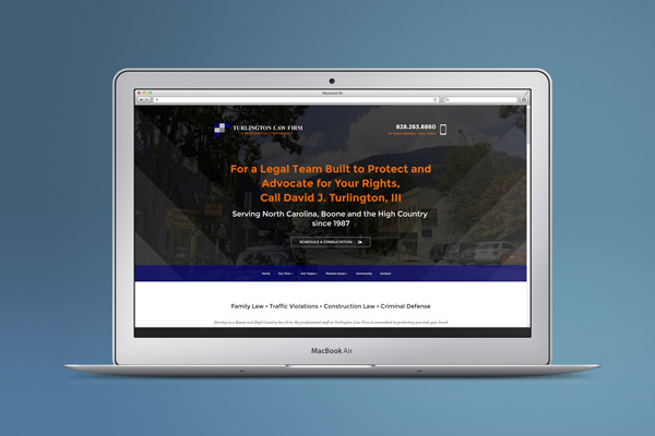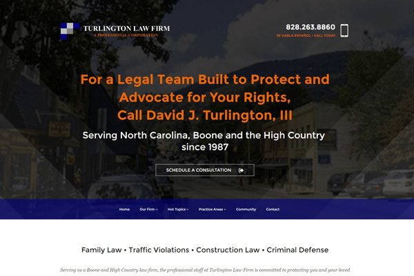 Boone, NC Attorney, David Turington III selected Articulon to create a new website. Branding firm Articulon created a fresh, updated look using WordPress as the content management system for this Boone, NC law firm, Turlington. With attention to visual appeal, homepage sliders with custom-made imagery that complements the core messaging and SEO was completed. Understanding the importance of easy navigation, custom forms and a mobile device friendly interface are key distinctions of the website.